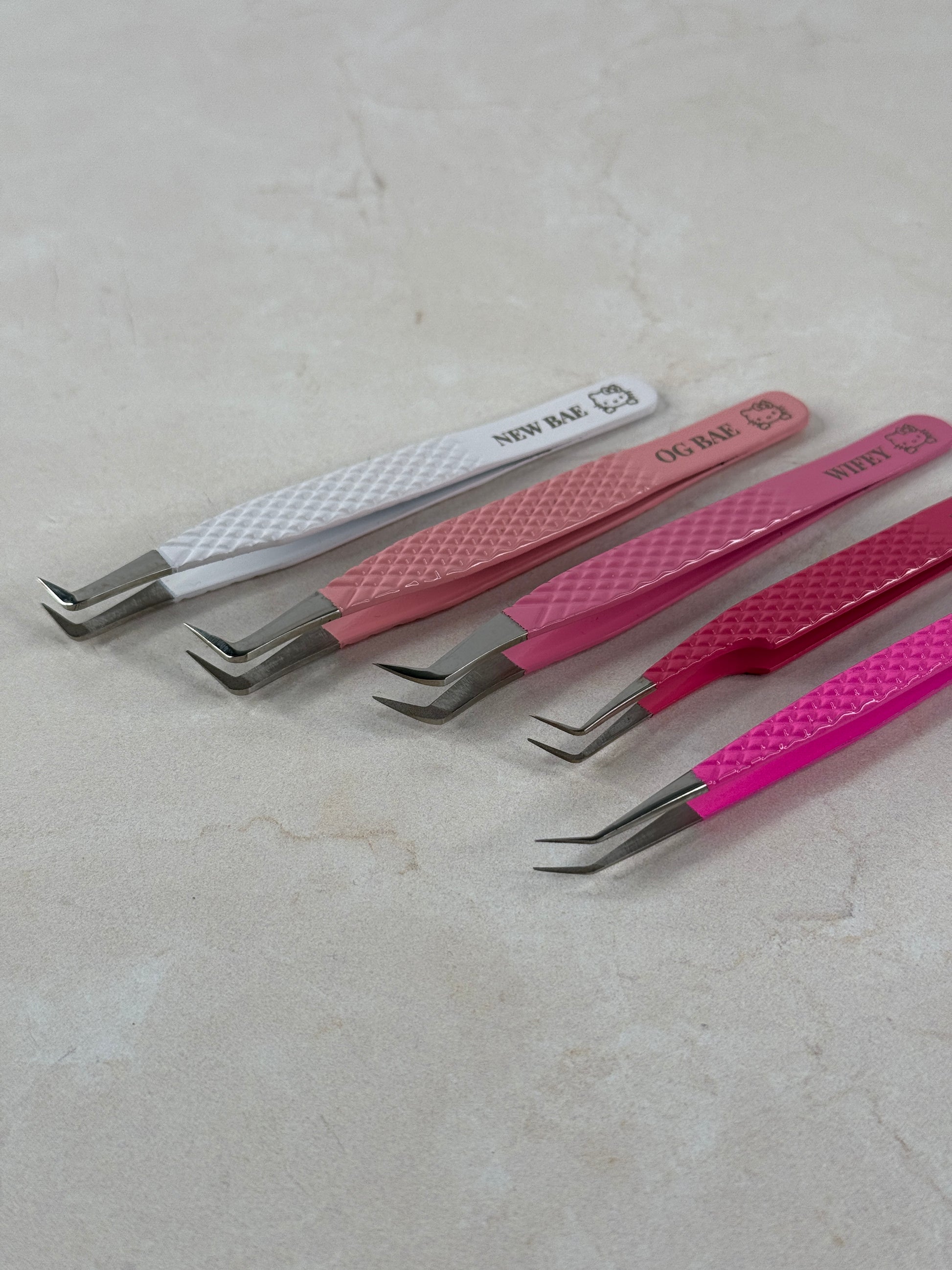 With 5 amazing styles to choose from, you'll be sure to find the right tweezer! Featuring an all over sweet spot, you'll never struggle to pick up even the finest fibers on the market! Excellent grip, extremely sturdy but lightweight. Never have an issue creating wet sets or creating spikes for your wispy sets, etc!